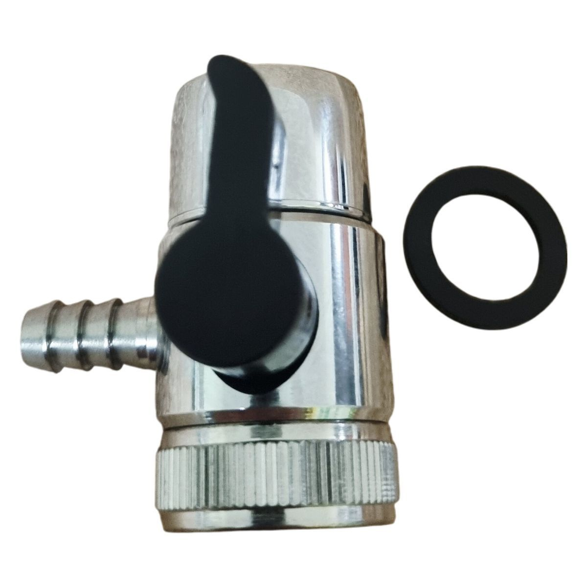 A csapra szerelhető víztisztító készülékekhez használatos útváltó csatlakozó, lehetővé teszi csapra való csatlakozást állandó jelleggel, így készülékét nem kell minden használatnál le és fel csatlakoztatni a csaptelep végére. Mérete: 3/8"-os Az útváltó csatlakozó fekete műanyag karja segítségével választhat a tisztítatlan csapvíz (mosogatáshoz használatos) és a tisztított víz között: 1.amennyiben a műanyag fekete útváltó kar függőleges állásban van, abban az esetben a víz nem folyik keresztül készülékén, így azt használhatja mosogatásra, vagy egyéb más célra is. 2.ha a fekete kar vízszintes állásban van, akkor a csapvíz kényszerítve van, hogy a készülékén keresztül folyjon át, így azt használhatjuk ivásra és főzésre egyaránt. Amennyiben belső menetes csapja (M24-es) van, használjon átalakító közcsavart hogy az útváltó csatlakozót fel tudja szerelni.
