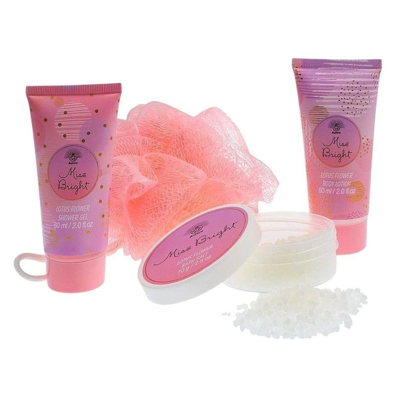 Lótusz illatú fürdő és testápolási termékeket tartalmazó ajándék kosárka.