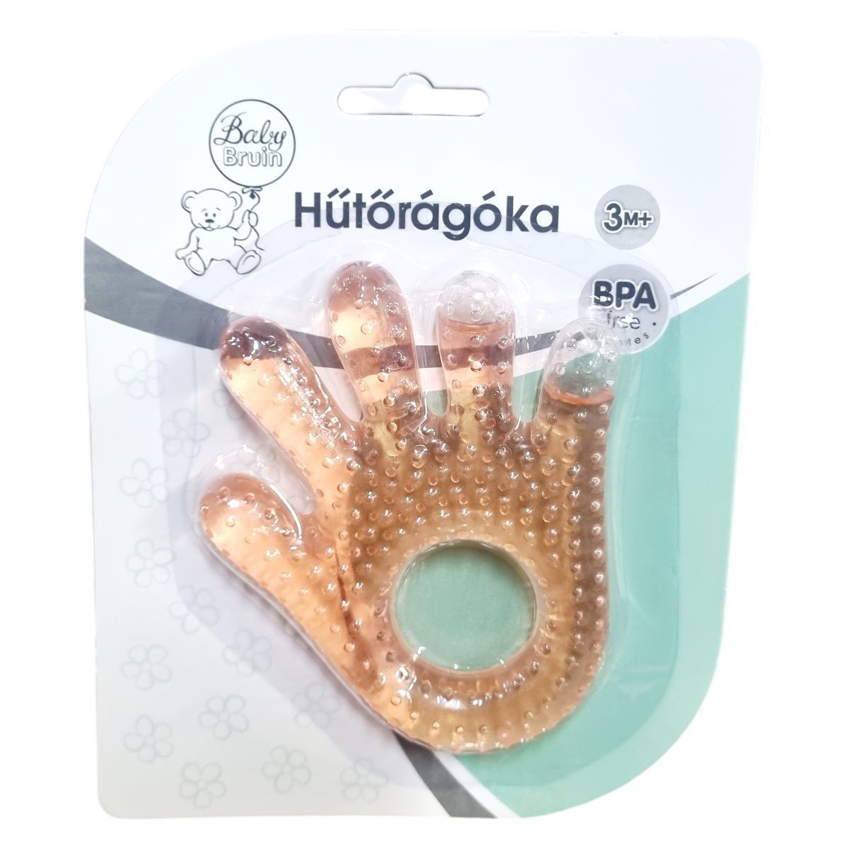 A Baby Bruin hűtőfolyadékos rágóka a 3 hónapos kortól ajánlott babáknak készült, hogy enyhítse fogzás közbeni ínyfájdalmaikat. A rágóka külső műanyag borítása alatt desztillált víz található, amelynek hűtő hatása hozzájárul az íny megnyugtatásához. Használat előtt mindig tisztítsa meg a terméket karcmentes, semleges mosószerrel, de mosogatógépben nem tisztítható. A terméket tilos fagyasztóba tenni, hűtőben kell tárolni, mikrohullámú sütőben nem használható, és ne hagyja tűző napon. Sérült vagy hibás termék használata veszélyes lehet, ezért cserélje ki. A csomagolást reklamáció esetén őrizze meg.
