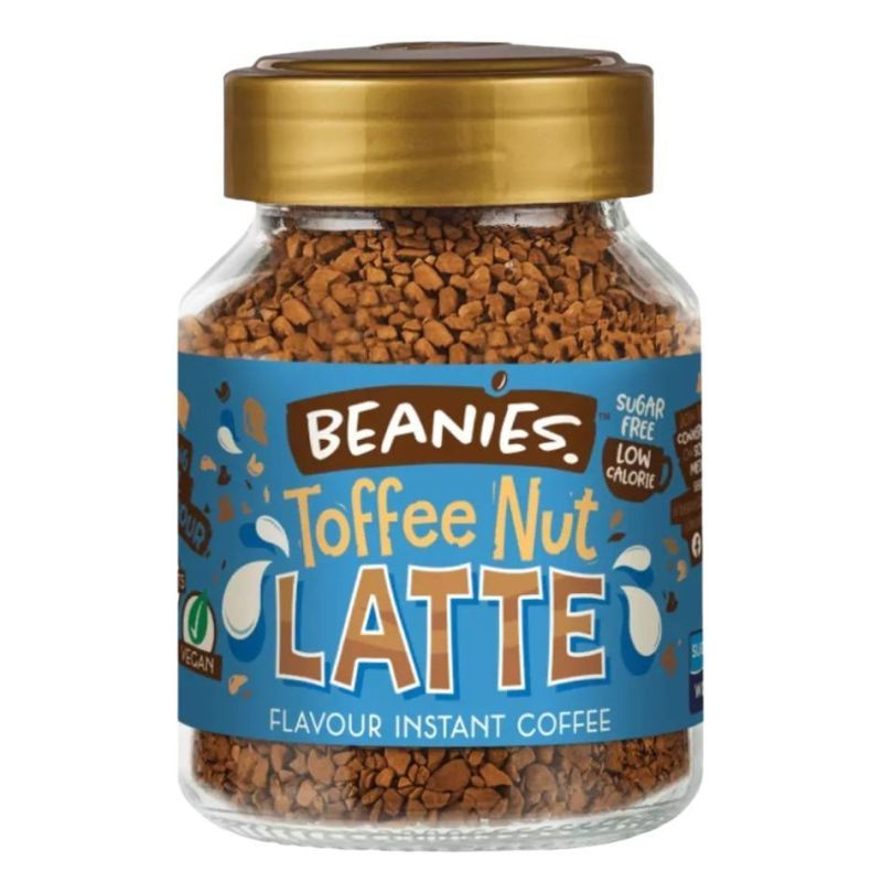 Beanies Toffee Nut Latte Karamellás mogyorós ízesített instant kávé Angliából: a prémium minőségű kávét fagyasztva szárítják és különlegesen finom ízeket adnak hozzá, hogy a kávézás minden alkalommal igazi ünnep legyen.