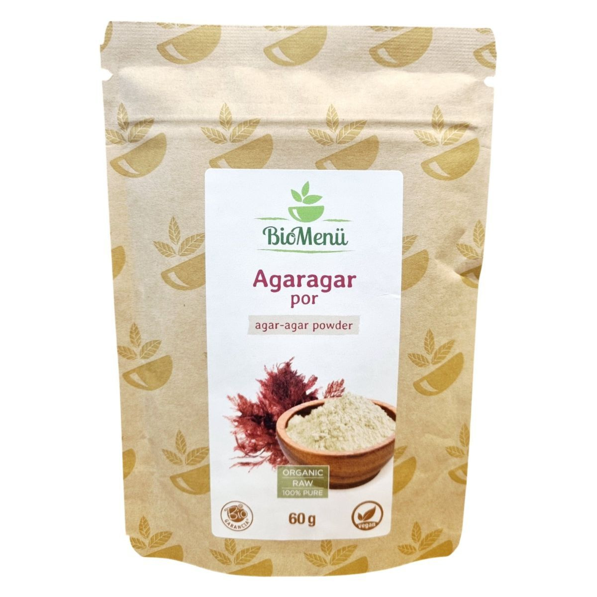 A BioMenü Agaragar por egy organikus, 100% tisztaságú agaragar termék, amely Spanyolországból származik. A termék bio, raw és vegán minősítéssel rendelkezik, és kiválóan alkalmas levesek sűrítésére, valamint cukorkák és fagylaltok zselésítésére. A termék táplálkozási tulajdonságai változhatnak a környezeti feltételektől függően. A termék csomagolásán található HU-ÖKO-02 tanúsítvány igazolja az organikus minőséget. A terméket a Caleido IT-Outsource Kft. forgalmazza, székhelye Budapest, Reitter Ferenc utca 132. B. ép. I. em. 108.