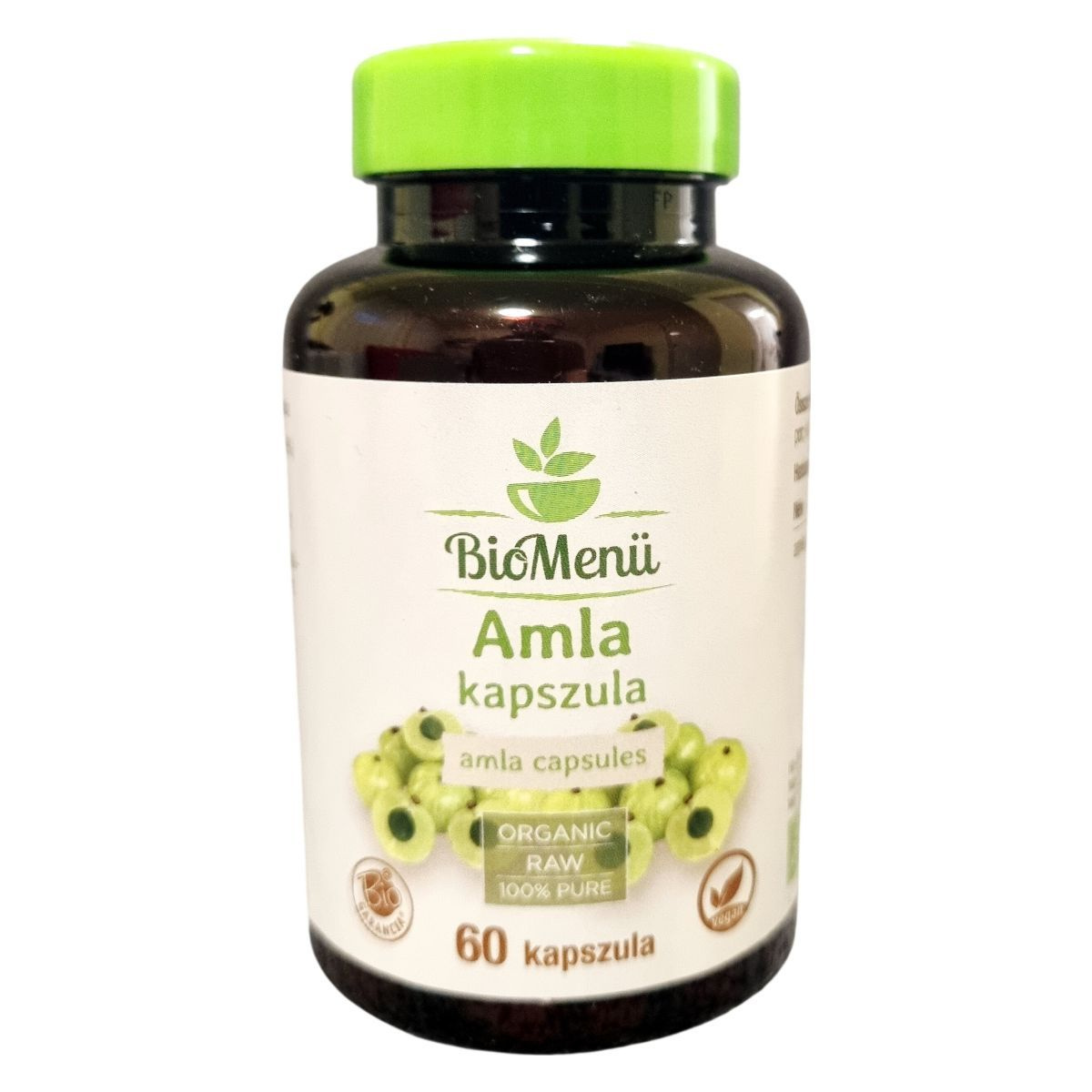 A BioMenü bio amla étrend-kiegészítő kapszula nettó tömege 32 g, 60 db kapszulát tartalmaz, melyek egyenként 550 mg súlyúak ±9% eltéréssel. A termék származási helye India. A kapszulák készítése során 100%-ban bio amla por használatos, amely nem EU mezőgazdaságból származik. A kapszulahéj hidroxipropil-metil-cellulózból áll, mely természetes eredetű összetevő. A termék HU-ÖKO-02 minősítéssel rendelkezik, amely bio minősítésre utal.