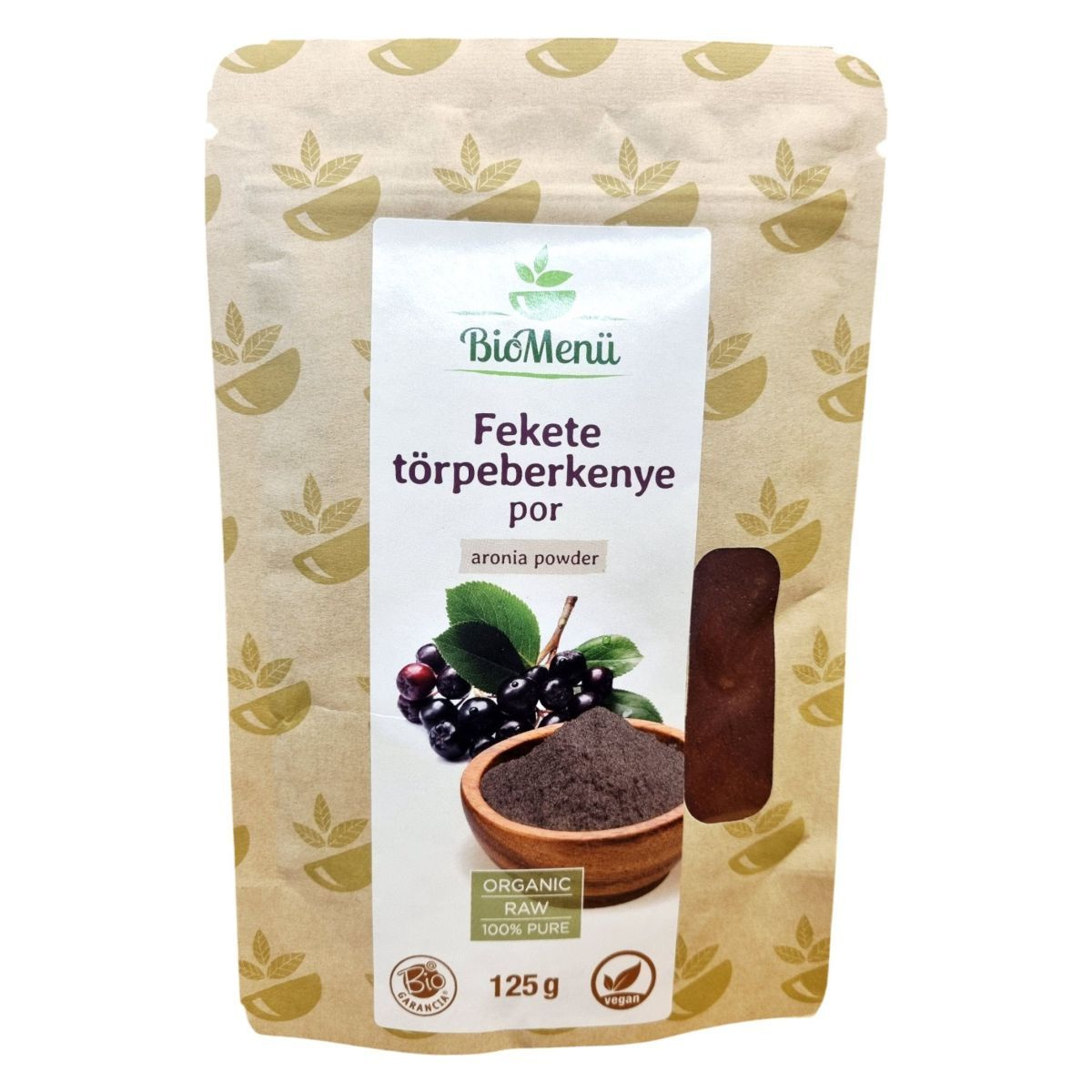 A BioMenü BIO Fekete TÖRPEBERKENYE por egy 125 grammos kiszerelésű, 100% bio fekete törpeberkenye bogyóból készült termék. Az aronia powder, vagyis törpeberkenye por, az Európai Unióból származik, és megfelel a bio, raw és vegán étrendi irányzatoknak. A termék energia- és tápérték adatai alapján gazdag szénhidrátokban és rostokban, miközben alacsony zsír- és cukortartalommal rendelkezik. A termék tárolása jól zártan, száraz, hűvös és fényvédett helyen ajánlott. A termék forgalmazója a Caleido IT-Outsource Kft., és rendelkezik HU-ÖKO-02 tanúsítvánnyal.