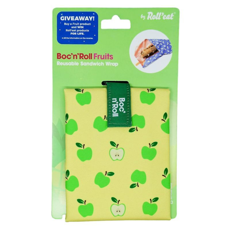 Környezetbarát szendvics csomagoló almás mintával, amely megőrzi az ételek frissességét és könnyen használható.
