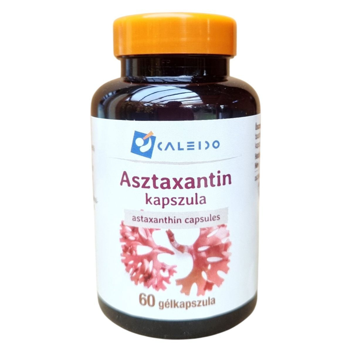 A Caleido Asztaxantin kapszula egy étrend-kiegészítő, amely 60 gélkapszulát tartalmaz, összesen 27 g nettó tömeggel. Az asztaxantin egy antioxidáns, amely hozzájárulhat a sejtek védelméhez. A termék asztaxantinolaj szuszpenziót tartalmaz, amelynek 10%-a asztaxantin. A kapszulák szarvasmarha zselatinból készülnek, és szójaolajat is tartalmaznak. A termék Kínából származik, és a Caleido IT-Outsource Kft. forgalmazza Magyarországon. A termék használata során fontos betartani az ajánlott napi mennyiséget, és figyelembe venni, hogy nem helyettesíti a kiegyensúlyozott étrendet.