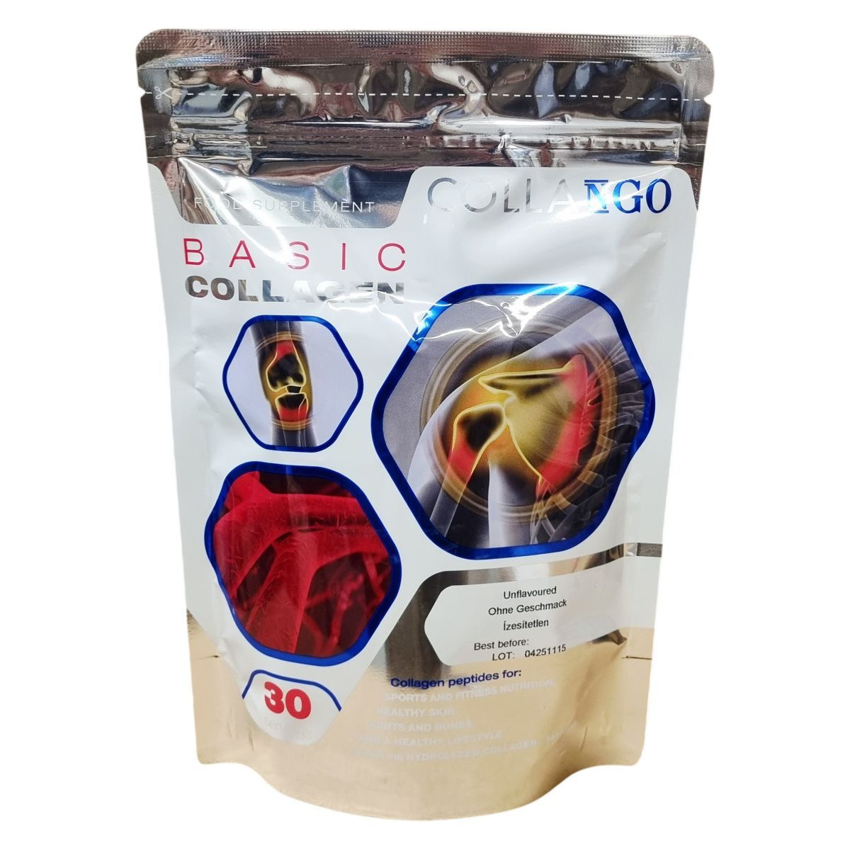 A Collango Basic Collagen egy ízesítetlen, hidrolizált sertés eredetű kollagén peptideket tartalmazó por, amely napi rendszeres alkalmazásra javasolt. A termék kizárólag I-es típusú kollagént tartalmaz, amely speciálisan előállított, könnyen oldódó formában érhető el. A por bekeverése egyszerű, 1 adag (10 g) port 200 ml vízben kell elkeverni. Fontos megjegyezni, hogy a termék gyártása olyan üzemben történik, ahol tej, tojás, földimogyoró, diófélék és zeller alapanyagokat is feldolgoznak, ennek megfelelően allergén információk figyelembevétele ajánlott. Az étrend-kiegészítők nem helyettesítik a változatos étrendet és az egészséges életmódot, ezért a termék alkalmazása mellett ezek betartása javasolt. A pontos adagolás és a gyermekektől való elzárás kiemelten fontos a biztonságos használathoz.