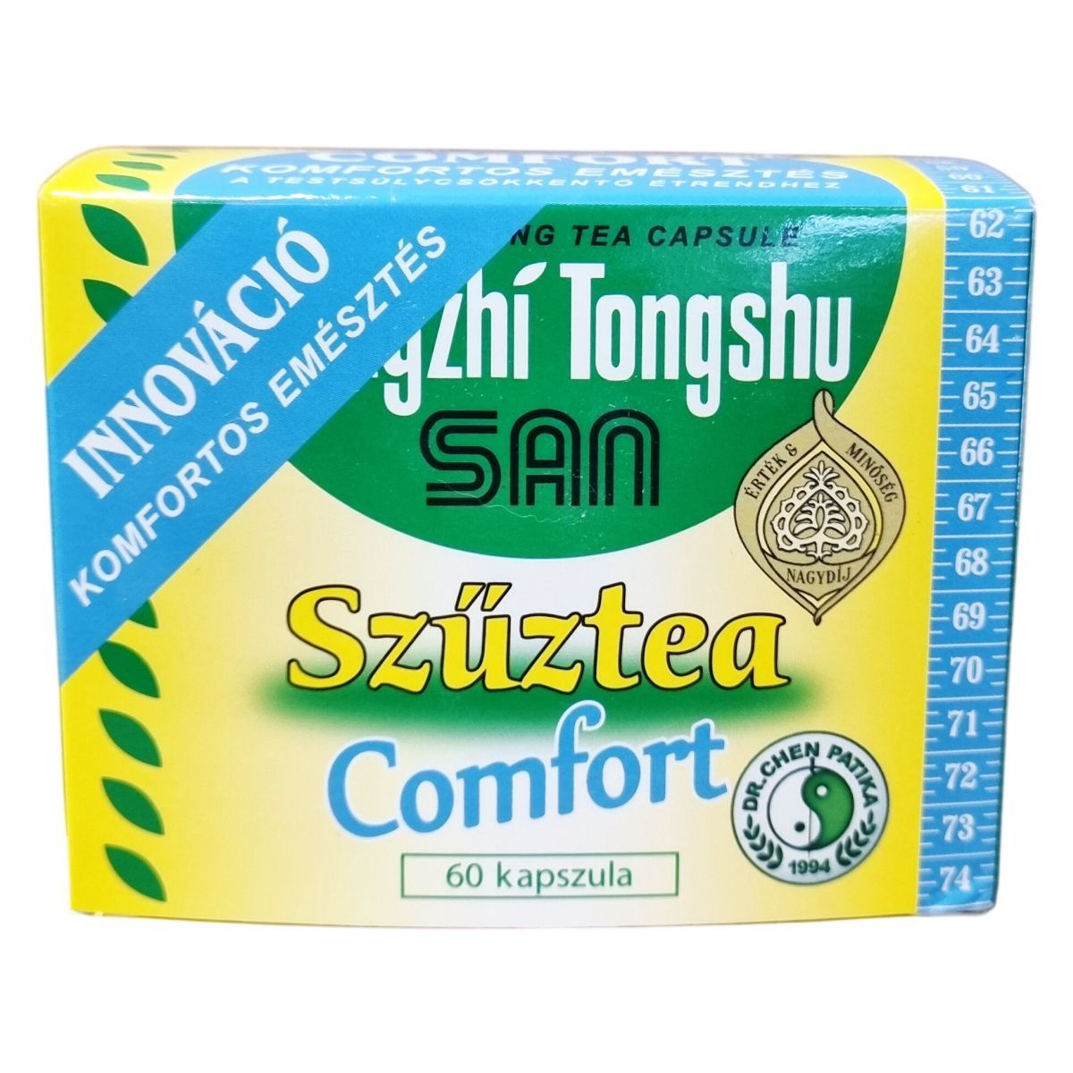 A Szűztea Comfort a hagyományos Szűztea új generációs fejlesztése, amely kifejezetten az emésztés normál gáz-egyensúlyának fenntartását célozza. Összetevői között megtalálható a zöldtea polifenol, mely hozzájárulhat az anyagcsere támogatásához és a zsírok oxidációjához, valamint az olyan gyógynövények, mint az édeskömény és az ánizs, amelyek az emésztőrendszer egészségét támogathatják. A koriander segíthet fenntartani a normál gáz-egyensúlyt, ezáltal támogatva a puffadás megelőzését, míg a szennalevél hozzájárulhat a bélműködés rendszerességéhez és az emésztés ritmusának fenntartásához. A termék nem helyettesíti a kiegyensúlyozott étrendet és az egészséges életmódot.