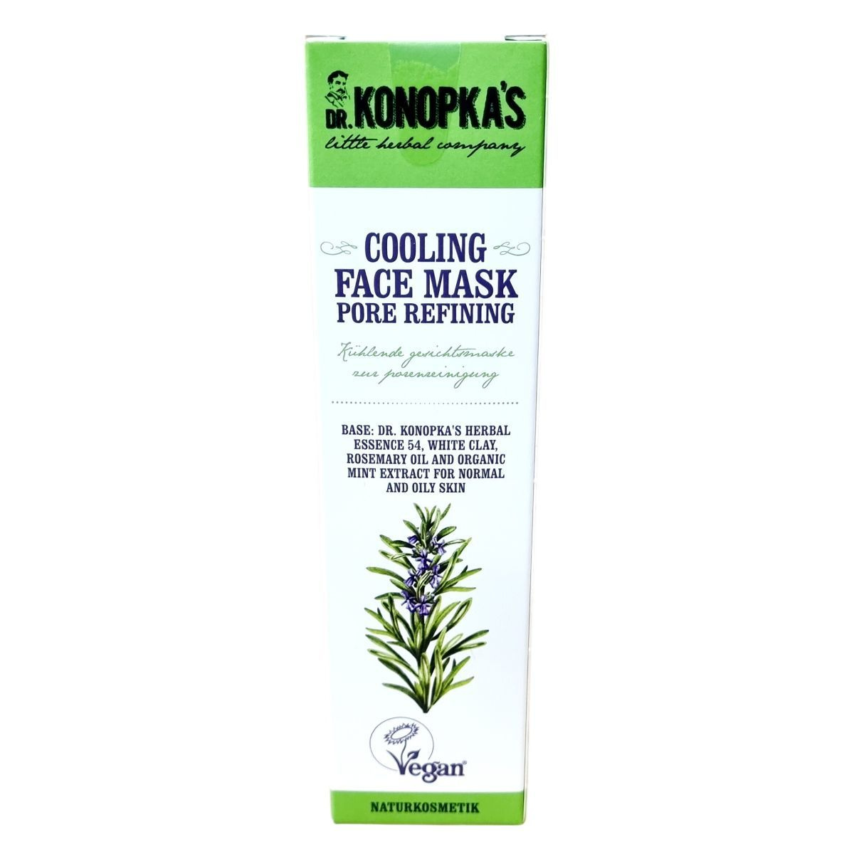 Dr. Konopka's kis gyógynövényboltjában minden alkalomra találhatunk természetes gyógymódokat. A vitalizáló balzsamok, főzetek és kenőcsök receptjeit nagy gondossággal gyűjtötték össze és generációról generációra adták tovább. A hűsítő arcmaszk Dr. Konopka speciális, 54-es számú gyógynövényes kivonatán és fehér agyagon alapul, amelyek segítik a megtisztított pórusok ápolását és a bőr hidratálását. A rozmaringolajjal és bio mentakivonattal kombinálva kellemes hűsítő érzetet nyújt, fokozva a bőr tónusát és rugalmasságát.