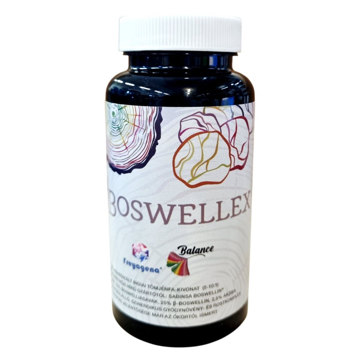 A BOSWELLEX egy indiai tömjénfa-kivonatot tartalmazó étrend-kiegészítő, amely a Sabinsa Boswellin gyártótól származik. A termék legalább 65% boswell savakat, 25% B-boswellint és 2,5% AKBA-t tartalmazhat, amelyek szinergikusan támogathatják az egészséget. A termék Magyarországon fejlesztett és gyártott, és a Nutribalance Kft. forgalmazza. Az étrend-kiegészítő nem helyettesíti a kiegyensúlyozott étrendet és az egészséges életmódot, és az ajánlott fogyasztási mennyiséget nem szabad túllépni. Tárolása száraz, hűvös helyen, közvetlen napfénytől védve ajánlott.