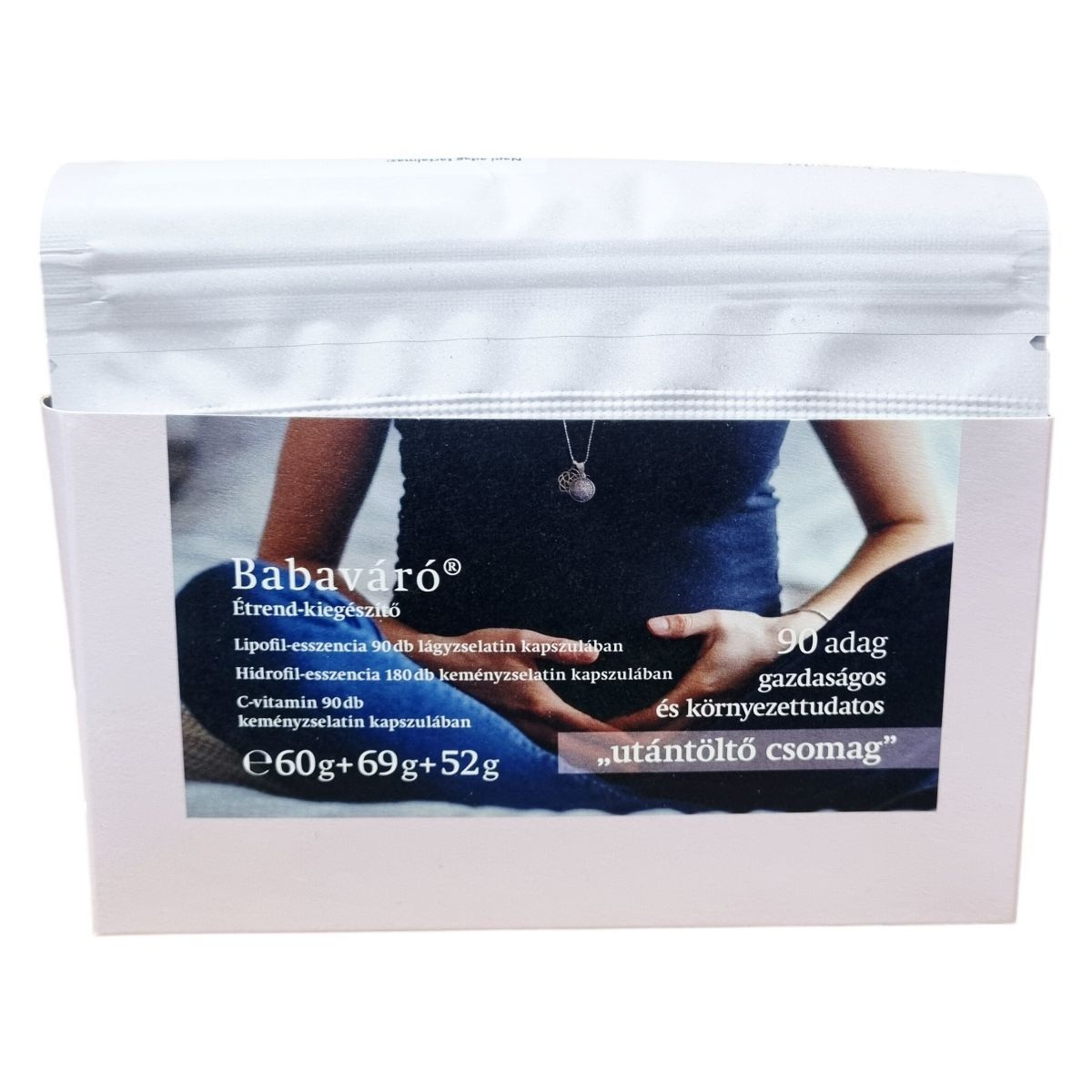 A Babaváró® étrend-kiegészítő 90 adagnyi, gazdaságos és környezettudatos „utántöltő csomag” formájában kapható, háromféle kapszulát tartalmazva: lágyzselatin Lipofil-esszenciát, keményzselatin Hidrofil-esszenciát és keményzselatin C-vitamint. A termék TÜV és ISO 9001:2015 tanúsított folyamatok előírásai szerint készül, és a csomagolás 100%-ban újrahasznosítható. A napi adag egy kapszula, amely a GAL Babaváró® vízoldékony sárga kapszuláival is kombinálható. A pontos kapszulatartalom megismeréséhez egyszerűen kiemelhető a tasakok tartalma a hajtogatott talpazatból. A termék a szervezet támogatására összeállított komplex összetételű készítmény, amely egyéni igények szerint tovább egészíthető multivitaminokkal.