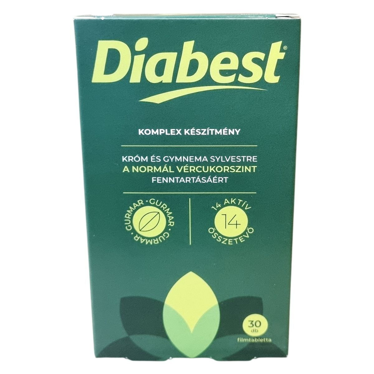 A Diabest filmtabletta 14 aktív összetevőt tartalmazó komplex készítmény. A Gymnema sylvestre hozzájárul a vér normál glükózszintjének fenntartásához. A króm támogathatja a normál vércukorszint fenntartását, míg a szelén hozzájárulhat a pajzsmirigy normál működéséhez. A cink és az A-vitamin révén támogatható a normál látás fenntartása. A B1-, B2- és B6-vitaminok részt vehetnek a normál energiatermelő anyagcsere-folyamatokban. A cink részt vehet a normál szénhidrát-anyagcserében. A ginzeng hozzájárulhat a megfelelő fizikai és szellemi erőnlét fenntartásához.