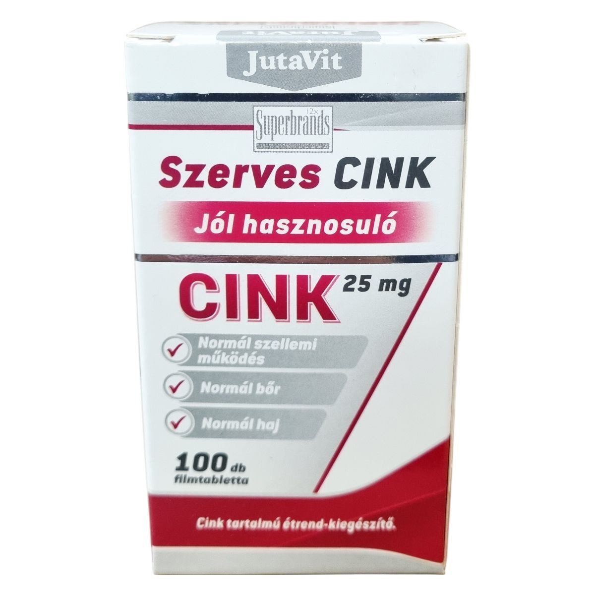 A JutaVit Szerves Cink kizárólag szerves kötésű, jól hasznosuló cink-glükonátot tartalmaz, melyből származó szerves cink jobb hasznosulással rendelkezik, mint a szervetlen cink-oxid vegyületek. A cink hozzájárulhat az immunrendszer normál működéséhez, a sejtek oxidatív stresszel szembeni védelméhez, a normál szellemi működéshez, valamint a bőr, a köröm és a haj normál állapotának fenntartásához.