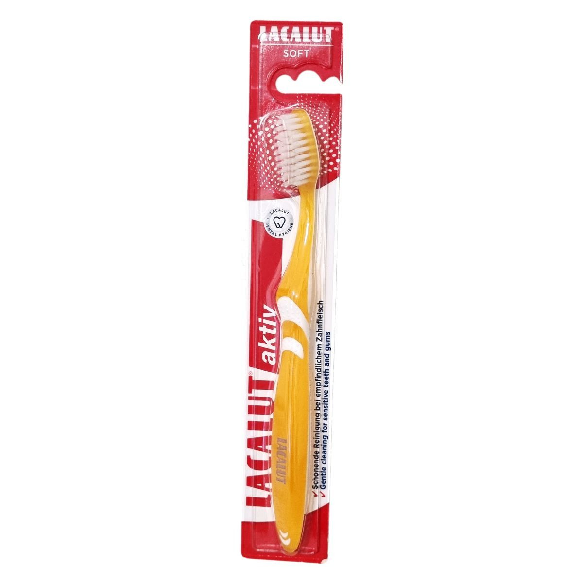 A Lacalut Soft aktív fogkefe puha, 0,15 mm átmérőjű, kúpos végű sörtékkel rendelkezik, amelyek alapos és kíméletes tisztítást biztosítanak a fogfelszínen és a fogínyszéleken, beleértve a fogközöket is. Ergonomikus, csúszásmentes markolata hüvelykujjtámasztóval segíti a kényelmes fogást. A terméket Németországban gyártják, és a Lacalut márka a fogápolás érzékeny igényeit célozza meg.