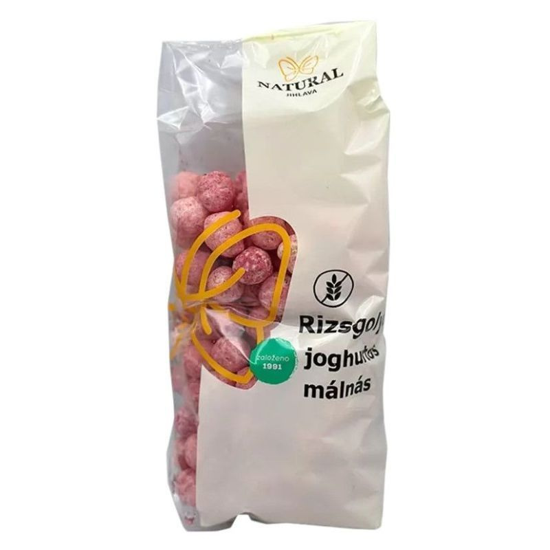 Összetevők: extrudált rizsdara, joghurt bevonat 20% (cukor, növényi zsír (pálma és shea), sovány tejpor, tejsavó, joghurt por 1,6%, emulgeálószer–szója licitin, savanyúság szabályozó - citromsav, aroma, konyhasó), szárított málnapor 20%.