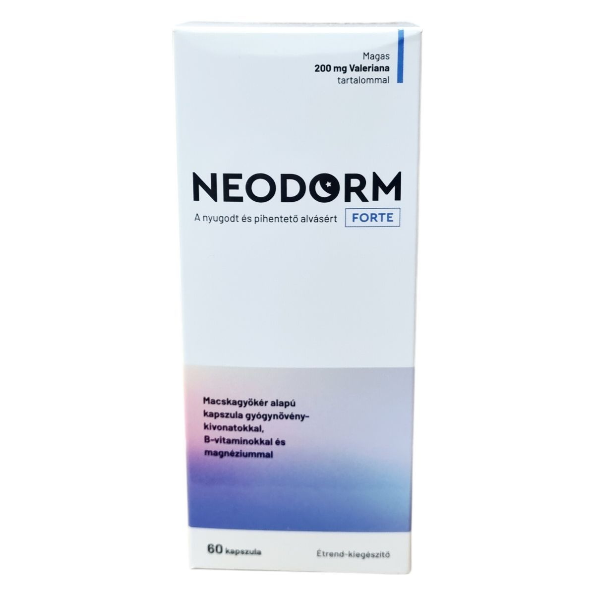 Próbáld ki a macskagyökér-kivonatot, citromfű-, golgotavirág-, komló-, kamillavirág- és keserűnarancs-kivonatot tartalmazó NEODORM Forte kapszulát! Macskagyökér-kivonatot, valamint citromfű-, golgotavirág-, komló-, kamillavirág- és keserűnarancs-kivonatot tartalmaz, melyek hozzájárulnak a nyugodt, pihentető alváshoz. Hatásukat kiegészítik a B1-, B2- és B6-vitaminok és a magnézium, melyeknek szerepe van az idegrendszer normál működésének fenntartásában.