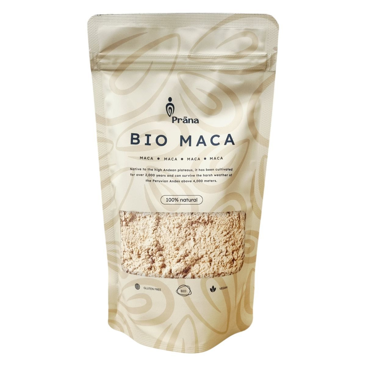 A maca az Andok magas fennsíkjain őshonos növény, amelyet több mint 2000 éve termesztenek. Az erős perui Andok időjárási viszonyai között, 4000 méter feletti magasságban is megél. A termék 100% természetes alapanyagból készül, bio minősítésű, gluténmentes és vegán. Felhasználható smoothie-kban, sütéshez vagy étkezések energizáló szórásaként. Az édesföldi ízvilág és táplálkozási előnyei miatt jól beilleszthető különböző étrendekbe. Származási helye Peru. A termék nyomokban tartalmazhat mogyorót, dióféléket és szezámmagot, ezért érzékenyeknek figyelmet igényel.