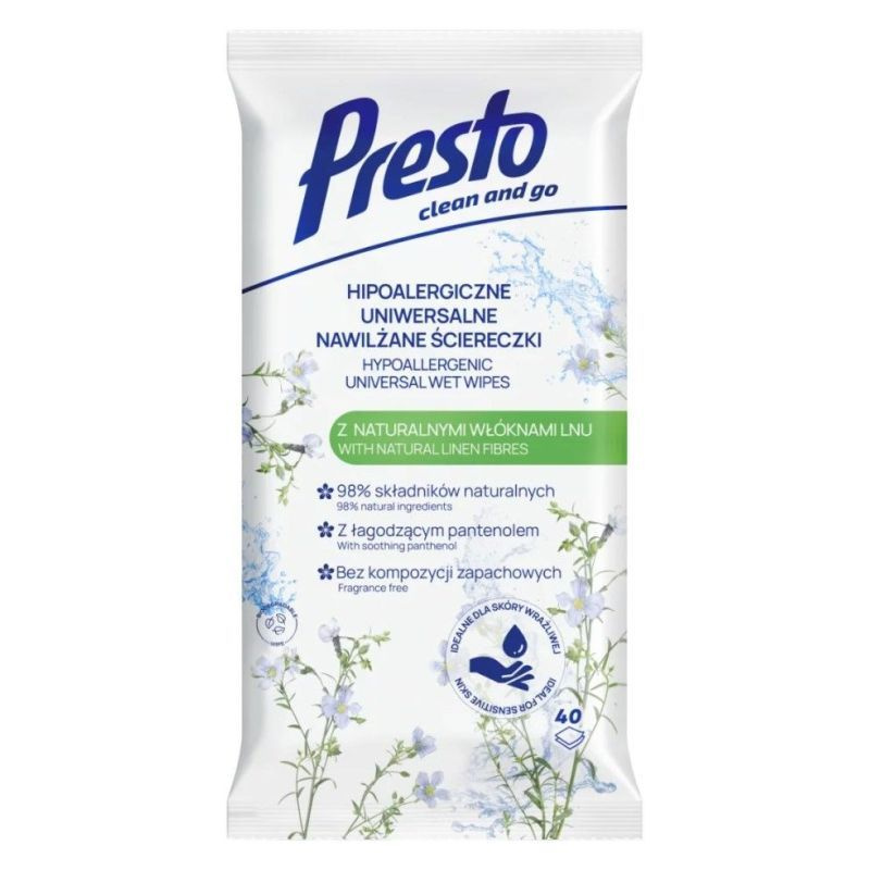 Nedves törlőkendő. Csökkenti a baktériumok szintjét. Biológiailag lebomló.