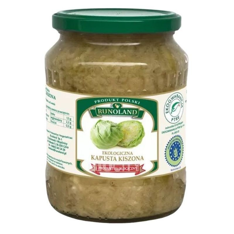 Összetevők: pasztőrözött bio savanyú káposzta 84%, víz, só.Tartósítószert nem tartalmaz, GMO mentes.