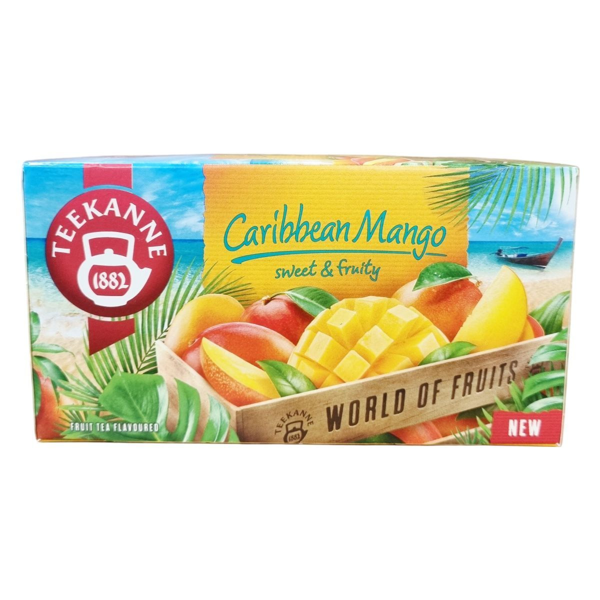 A Teekanne Caribbean Mango ízesített gyümölcstea zamatos mangó ízzel kínál különleges élményt. Összetevői között alma, hibiszkusz, fehér hibiszkusz, mangó aroma, édes szederlevél, valamint citromsav és stevialevelek találhatók. A tea koncentrált mangólé-tartalma 2%. A termék 20 darab, egyenként 2,25 grammos filtert tartalmaz, melyek összes nettó tömege 45 gramm. A terméket hűvös, száraz helyen javasolt tárolni. Az elfogyasztás élményét a gyártó a Teekanne márka minőségében garantálja.
