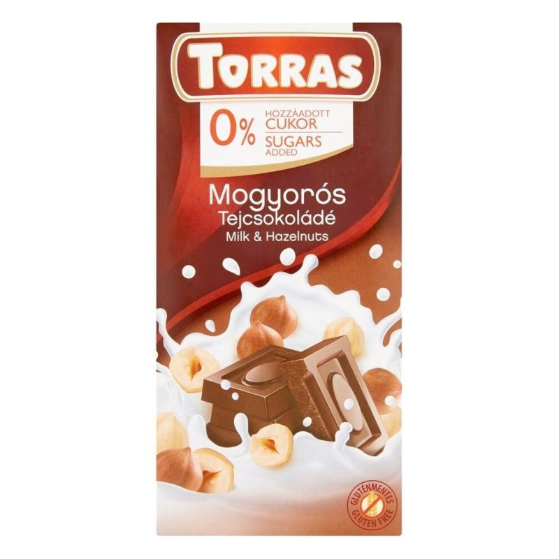 Torras gluténmentes, cukormentes tejcsokoládé - mogyoró 75g