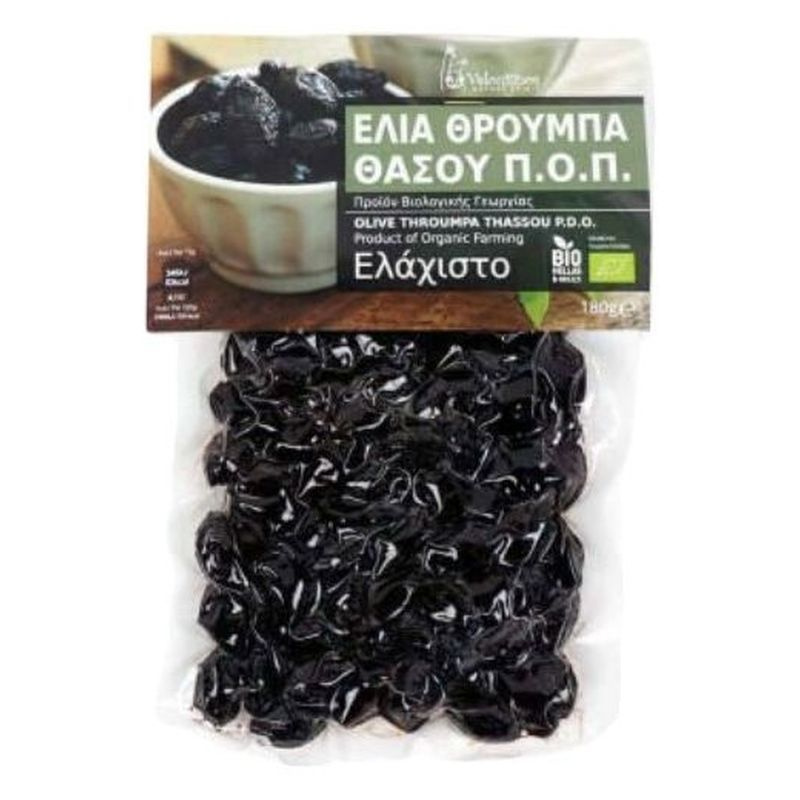BIO termesztésből származó minőségi Bio Thassou olívabogyó vákuum csomagolásban. A prémium minőségű, aromás ízű fekete olajbogyó mediterrán ételek, nyári saláták, pizzák kedvelt kiegészítője.