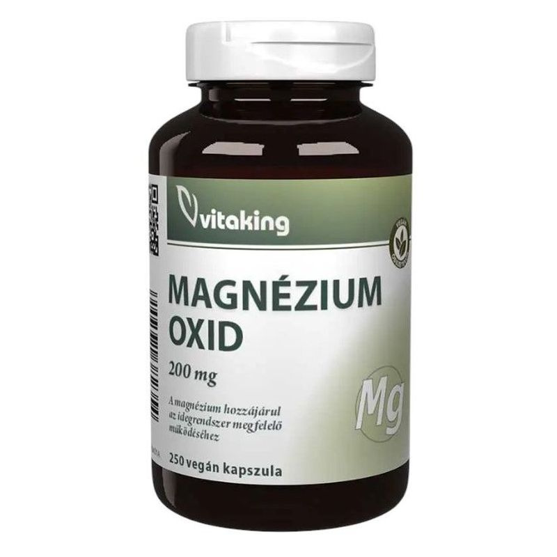 Hozzájárul a fáradtság és a kifáradás csökkentéséhez, az idegrendszer megfelelő működéséhez, a normál izomműködéshez és részt vesz a normál csontozat fenntartásában. Ez a Vitaking termék kapszulánként 200mg elemi magnéziumot tartalmaz (400mg magnézium-oxidból és 50mg szerves magnézium-biszglicinátból).