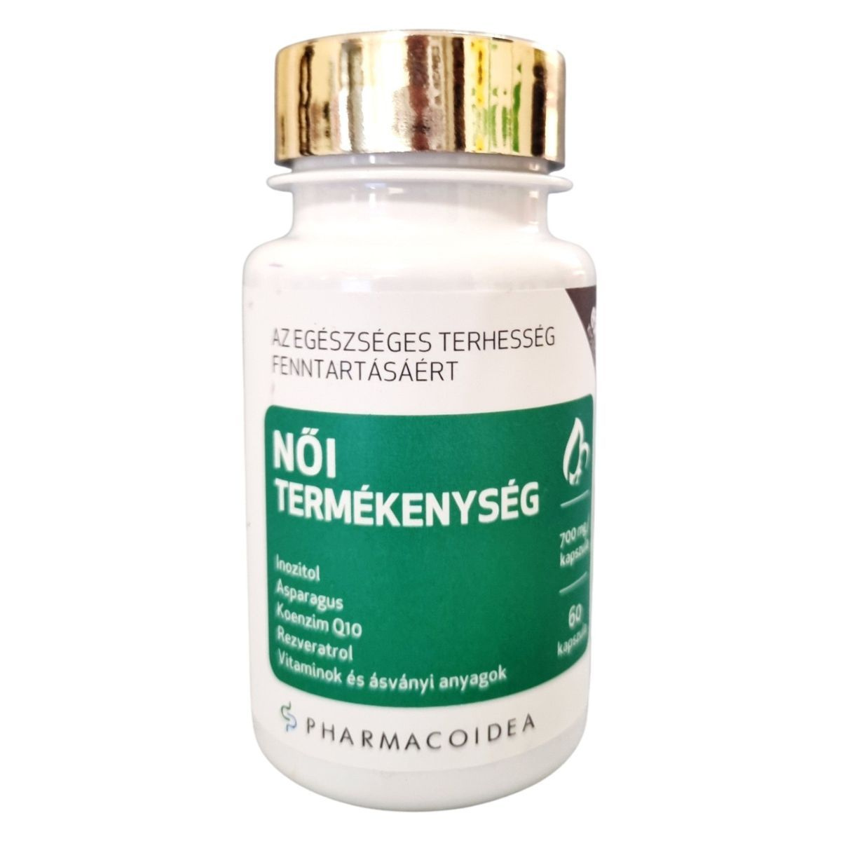 A PHARMACOIDEA NŐI TERMÉKENYSÉG étrend-kiegészítő célja, hogy támogassa a női termékenységet és a terhesség alatti egészséges szövetfejlődést. A termék inozitolt, aszparáguszt, koenzim Q10-et, rezveratrolt, valamint különféle vitaminokat és ásványi anyagokat tartalmaz, amelyek hozzájárulhatnak a hormonális egyensúly fenntartásához és a sejtosztódás normál folyamatához. A termék napi egy kapszula formájában fogyasztható, és fontos, hogy a javasolt mennyiséget ne lépjük túl. A termék nem helyettesíti a kiegyensúlyozott étrendet és az egészséges életmódot.